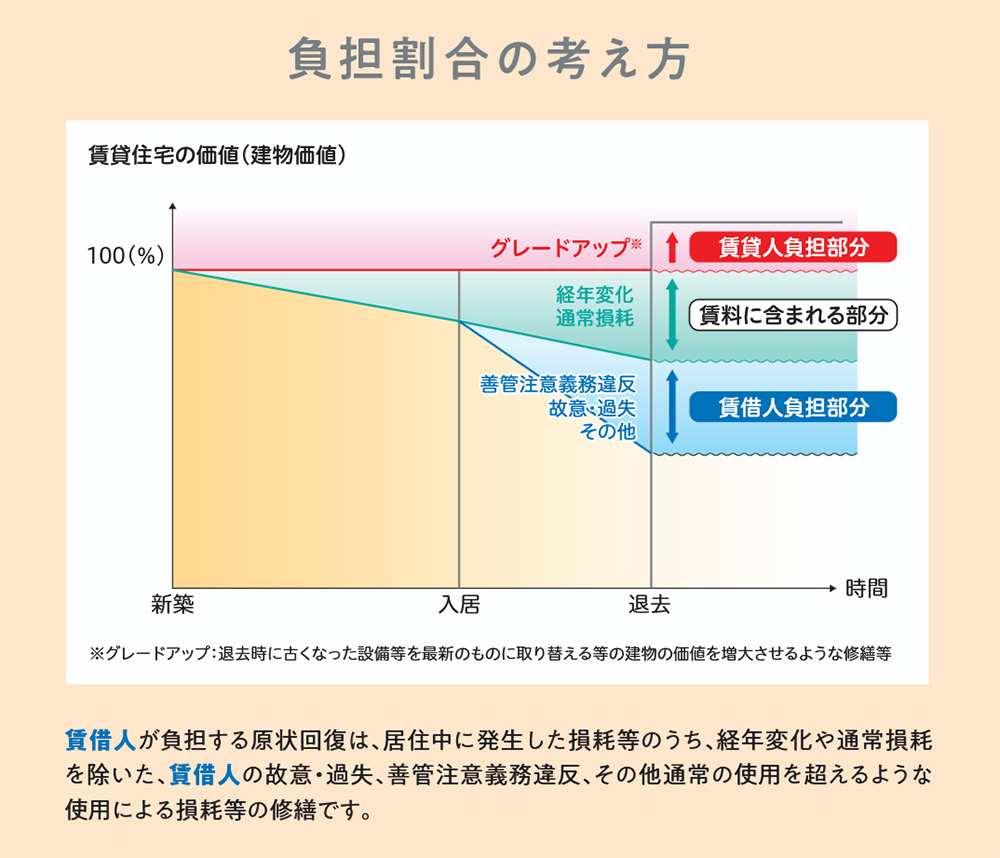 出典:国土交通省『「原状回復をめぐるトラブルとガイドライン」について』『賃貸住宅を退去する時の原状回復のポイント』