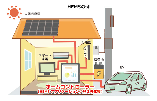 HEMSとは、“Home Energy Management System(ホーム エネルギー マネジメント システム)”の略称で、家庭内のエネルギー使用量を見える化して最適に制御するシステムです。