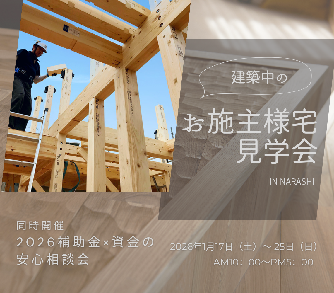 ※構造を確認できる建築中のお施主様宅見学会はお施主様のご厚意により開催させて頂いています。