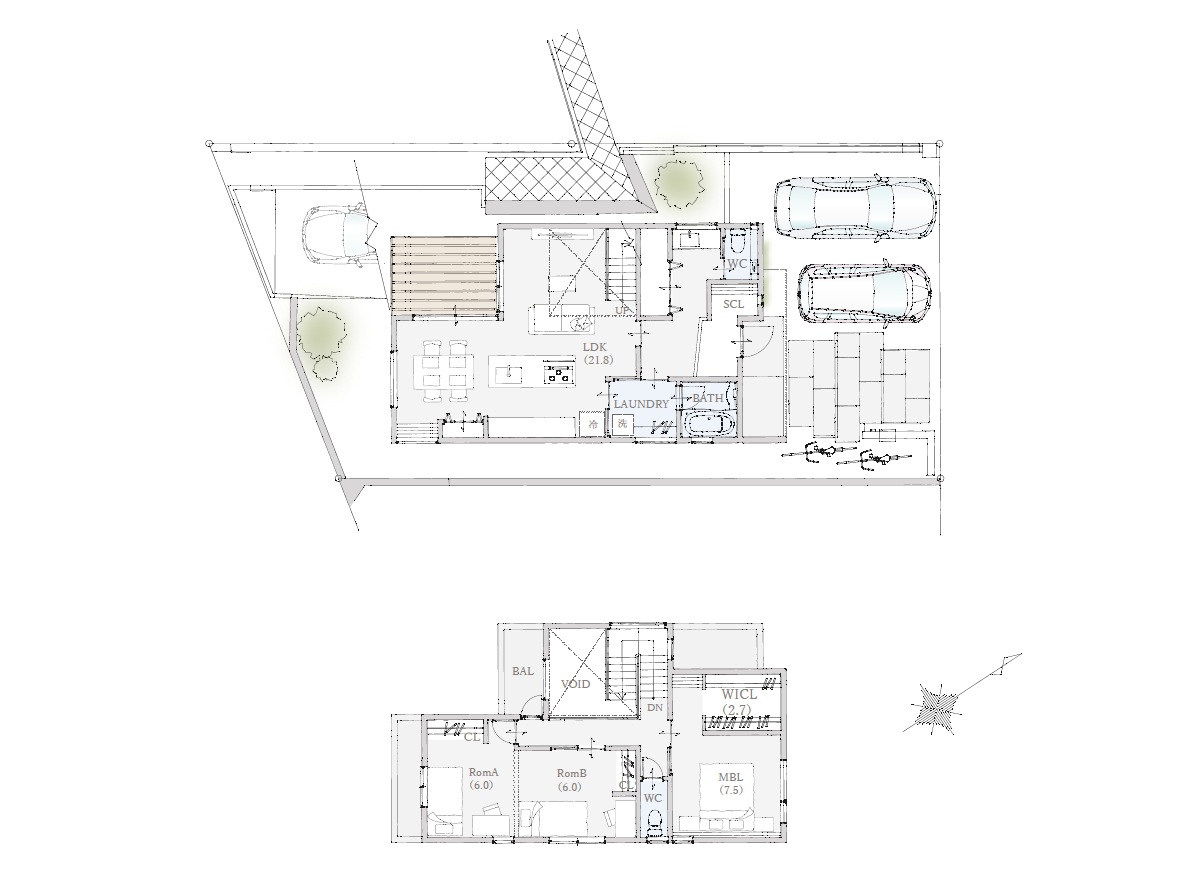 ◎ 吹き抜けや土間収納など、空間の余白が心にゆとりを生む設計。